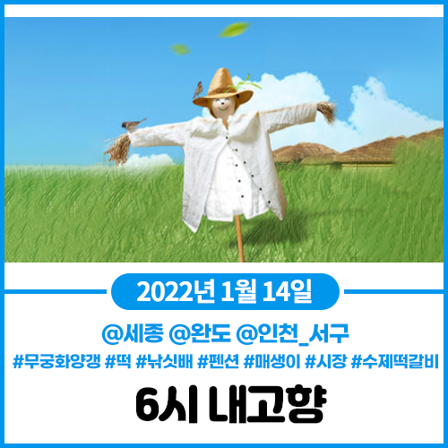 6시 내고향 1월14일 무궁화양갱,떡 (세종) 낚싯배,펜션,매생이 (완도) 시장,수제떡갈비,반찬,숯불생선구이,항아리숯불바비큐,한식디저트 (인천서구)