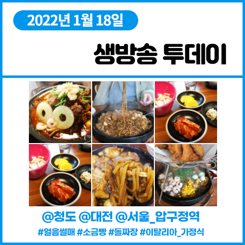 생방송 투데이 1월18일 빵플레이스 얼음썰매&소금빵 (청도) 돌짜장 (대전 산내로) 이탈리아 가정식 (서울 논현로155길)