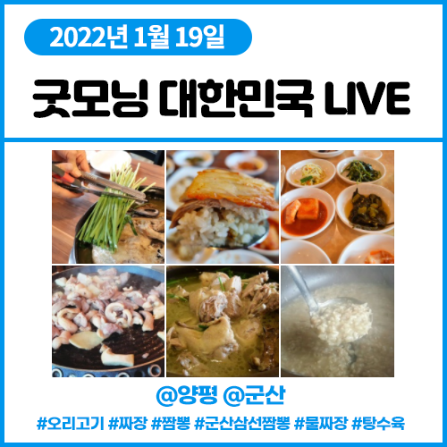 굿모닝 대한민국 LIVE 1월19일 겨울철 보양식 오리고기 (양평) 맛있는 동네로 짜장 짬뽕 군산삼선짬뽕 물짜장 탕수육 (군산)