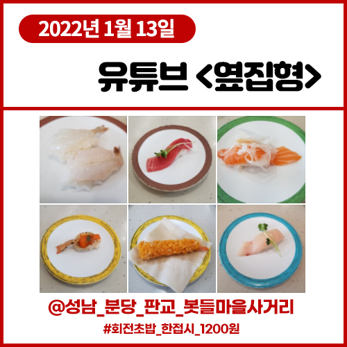유튜브 <옆집형> 1월13일 한 접시 1200원 회전초밥 스시선 (성남 분당 판교,봇들마을사거리)