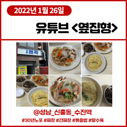 유튜브 <옆집형> 1월26일 부서진 간판에 배달도 안 하는 오래된 짜장면 맛집 짜장 간짜장 볶음밥 탕수육 의천각 (성남 신흥동,산성대로215번길,수진역)