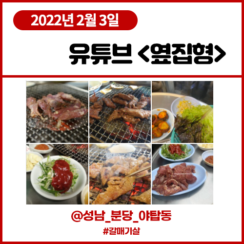 유튜브 <옆집형> 2월3일 갈매기살 사철숯불갈매기 (성남 분당 야탑동,양현로)
