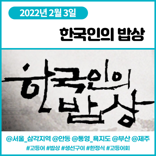 한국인의 밥상 2월3일 고맙다, 고등어 생선구이 백반 (서울 삼각지역) 한정식 (안동) 고등어 회 (통영 욕지도)