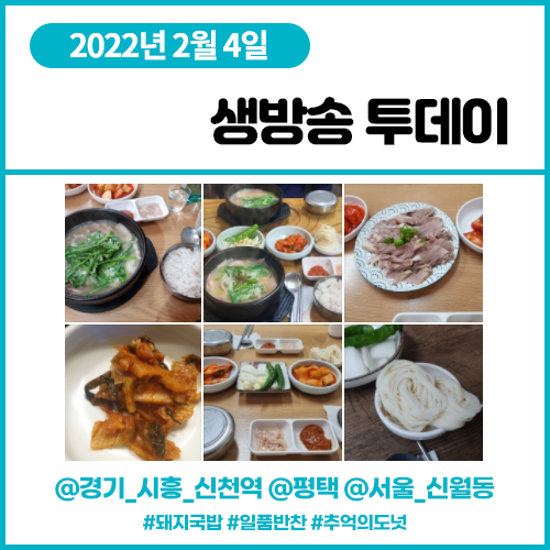 생방송 투데이 2월4일 평창 3GO 여행 수도권 최고의 돼지국밥 (경기 시흥 신천역) 일품 반찬 가게 (평택) 인생 분식 40년 추억의 도넛 (서울 신월동)