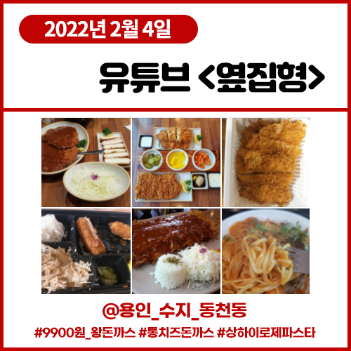 유튜브 <옆집형> 2월4일 9900원 왕돈까스 통치즈 돈까스 상하이 로제 파스타 이화돈까스 (용인 수지 동천동)