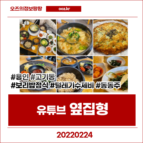 유튜브 <옆집형> 2월24일 보리밥정식 털레기수제비 동동주 - 주막보리밥 고기동점 (경기 용인 고기동)