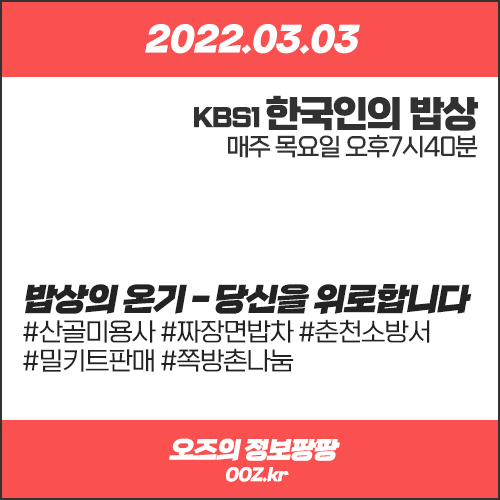 거기_어디야? /KBS1_한국인의밥상(목)2022. 3. 3. 17:25