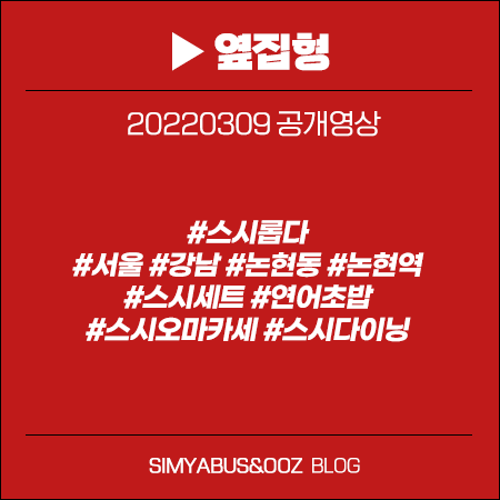 유튜브 <옆집형> 3월9일 #스시세트 #연어초밥 #스시오마카세 #스시다이닝 #스시롭다 #서울_강남_논현동_논현역