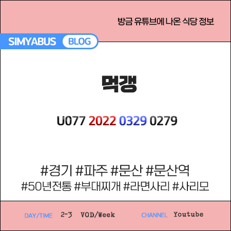 유튜브 <먹갱> 3월29일 [경기파주/문산,문산역] 삼거리부대찌개 - 50년 전통맛집 부대찌개+라면사리10+소세지사리+고기사리+모닝사리+햄사리