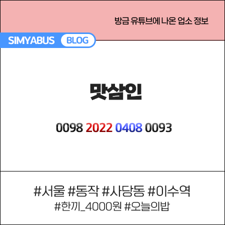 유튜브 <맛삼인> 4월8일 [서울동작/사당동,이수역] THE밥(더밥) - 오늘의 밥 한끼 4000원