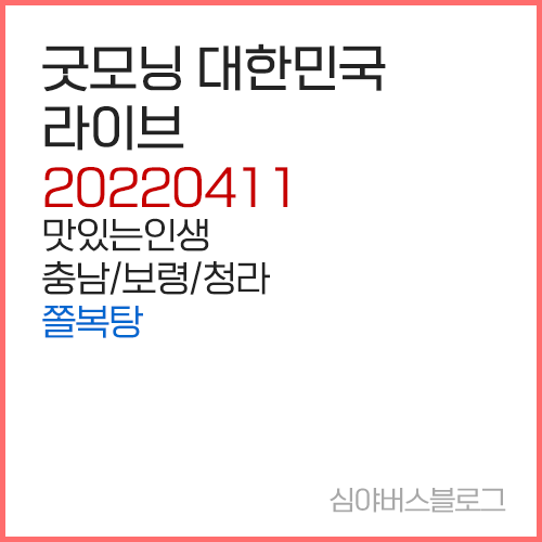 굿모닝 대한민국 라이브 4월11일 [충남/보령/청라] 샘물식당 - 쫄복탕