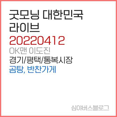 굿모닝 대한민국 라이브 4월12일 [경기/평택/통복시장] OK맨 이도진 - 일오진곰탕 - 국내산 곰탕, 쌍둥이네 반찬백화점 - 3대째 반찬가게
