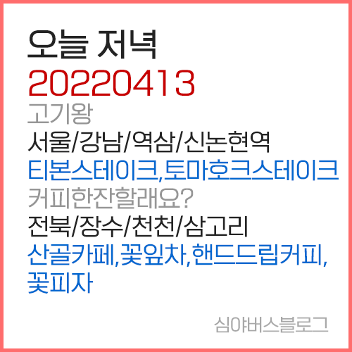 | 오늘 저녁 4월15일 [경기/화성/동탄1] 강남대패&샤브 - 가격파괴 무한리필 고깃집 (0) | 2022.04.15 |