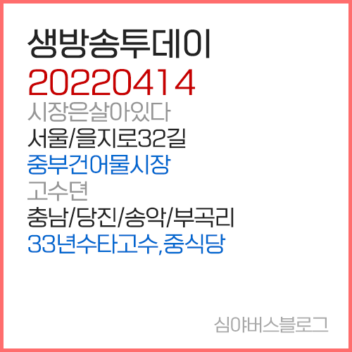생방송 투데이 4월14일 [서울/을지로32길] 중부건어물시장 [충남/당진/송악] 당진수타면가 - 33년 수타고수, 중식당