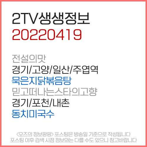 2TV 생생정보 4월19일 [경기/고양/일산/주엽역] 황토골 - 묵은지닭볶음탕 [경기/포천] 별난동치미국수 - 동치미국수