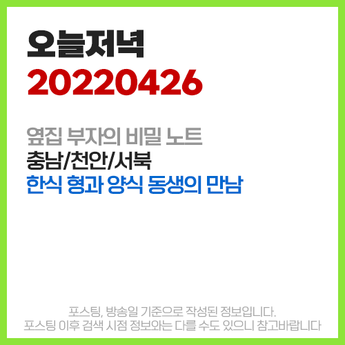 오늘 저녁 4월26일 [충남/천안/서북] 일이이사 (1224) - 한식 형과 양식 동생의 특급 만남