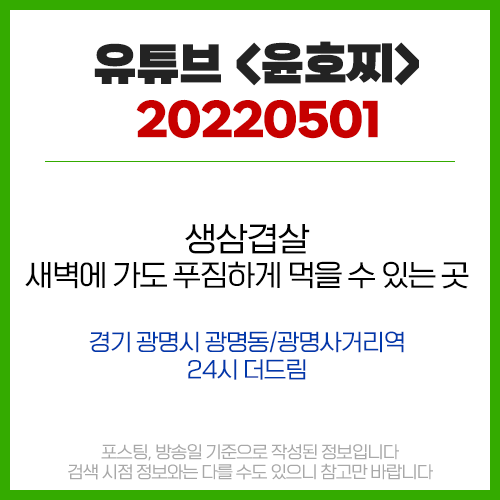 유튜브 <윤호찌> 5월1일 [경기/광명/광명동/광명사거리역] 24시 더드림 (더드림 광명점) - 생삼겹살