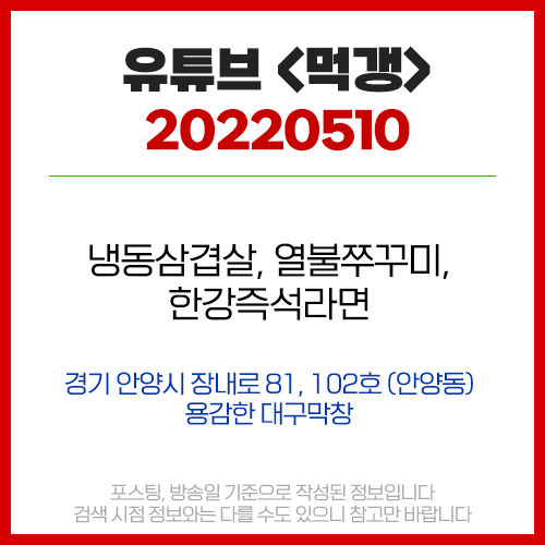유튜브 <먹갱> 5월10일 [경기/안양/안양동] 용감한 대구막창 - 냉동삼겹살, 열불주꾸미, 한강즉석라면 총 20인분 먹방