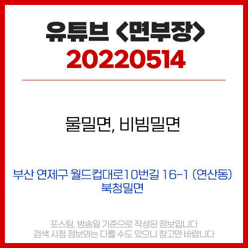 유튜브 <면부장> 5월14일 [부산/연제/연산동/물만골역] 북청밀면 - 물밀면 6000원 비빔밀면 7000원