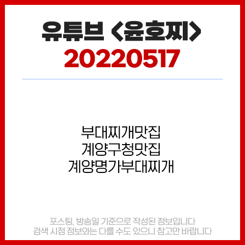 유튜브 <윤호찌> 5월17일 #계양구청맛집 #부대찌개맛집 #계양명가부대찌개