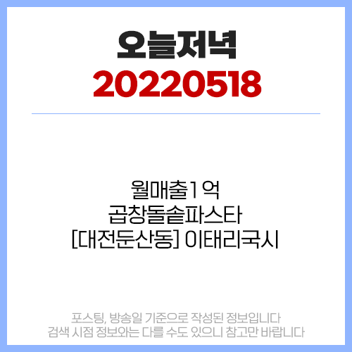 오늘 저녁 5월18일 #월매출1억 #곱창돌솥파스타 #이태리국시
