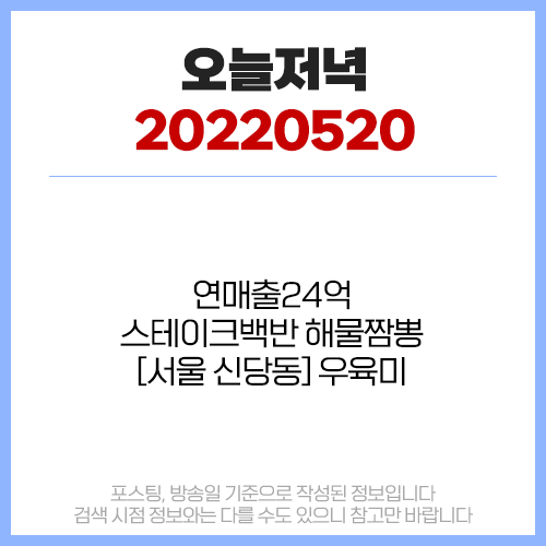 오늘 저녁 5월20일 #연매출24억 #스테이크백반 #해물짬뽕 #우육미