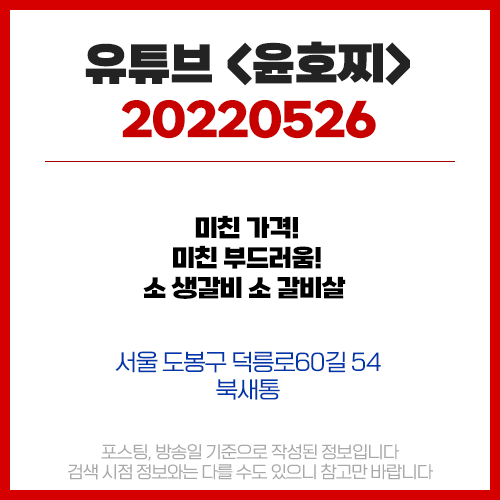 유튜브 <윤호찌> 5월26일 미친 가격! 미친 부드러움! 소 생갈비, 소 갈비살 - 북새통 (서울 도봉구 창동)