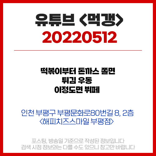 유튜브 <먹갱> 5월12일 떡볶이부터 돈까스 쫄면 튀김 우동 이정도면 뷔페 - 해피치즈스마일 부평점 (인천 부평)