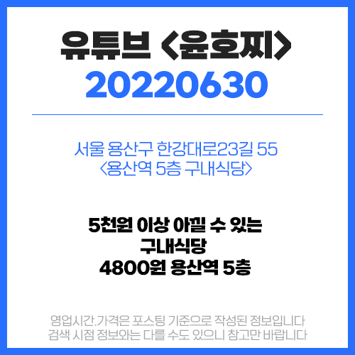 유튜브 <윤호찌> 맛집정보 (2022.06.30) 4800원 한식 - 용산역 구내식당 (서울 용산 용산역)