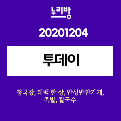 투데이 태백3GO여행-청국장, 태백한상 (강원 태백) 우리 동네 반찬 가게 (경기 안성) 서울 최고의 족발 TOP5 (서울 대조동,연신내역) 인생 분식-칼국수 (경기 부천 송내역)