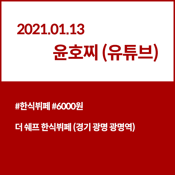 윤호찌(유튜브) 한식뷔페 6,000 - 더 쉐프 한식뷔페 (경기 광명 광명역)