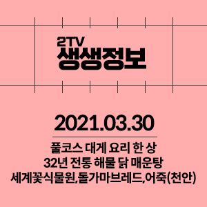 2021년 3월 30일 2TV 생생정보 풀코스 대게 요리 한상 (강원 양양) 32년 전통 해물 닭 매운탕 (서울 충무로역) 세계꽃식물원,돌가마브레드,어죽 (충남 천안)