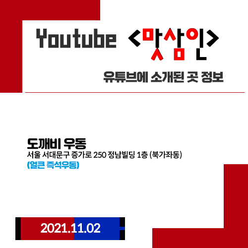 유튜브 <맛삼인> 11월2일 얼큰 즉석우동 도깨비 우동 (서울 북가좌동, 증산역)