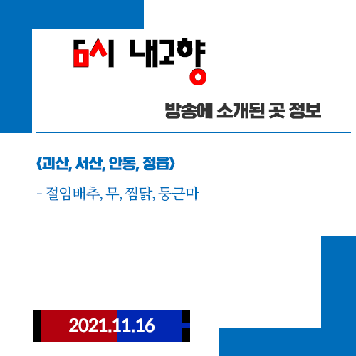 6시 내고향 11월16일 절임배추 무 찜닭 둥근마 (괴산, 서산, 안동, 정읍)