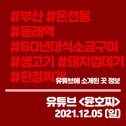 유튜브 <윤호찌> 12월5일 생고기 돼지껍데기 된장찌개 60년대식 소금구이 (부산 온천동,동래역)