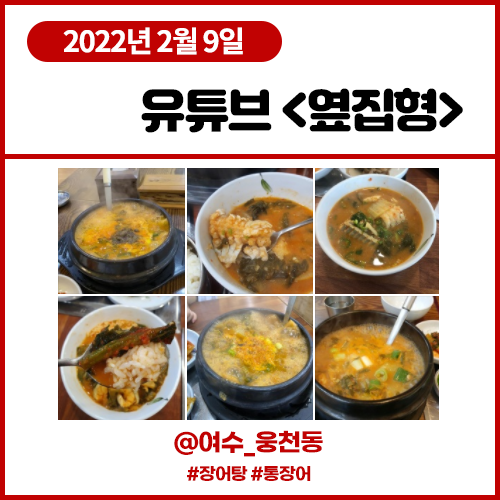 유튜브 <옆집형> 2월9일 여수3편) 여수 사람만 안다는 장어탕 통장어탕 문자네통장어 (여수 웅천동)