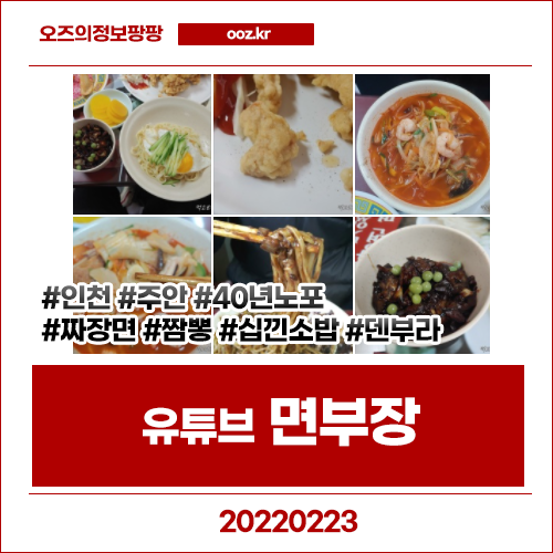 유튜브 <면부장> 2월23일 40년 노포 중국집 십낀소밥, 덴부라, 짜장면, 짬뽕 - 홍성각 (인천 미추홀 주안)