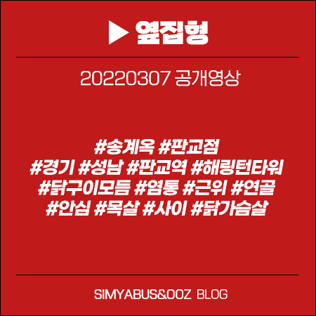유튜브 <옆집형> 3월7일 #닭구이모듬 #염통 #근위 #연골 #안심 #목살 #사이 #송계옥 #판교점 #경기_성남_분당_판교_판교역_해링턴타워